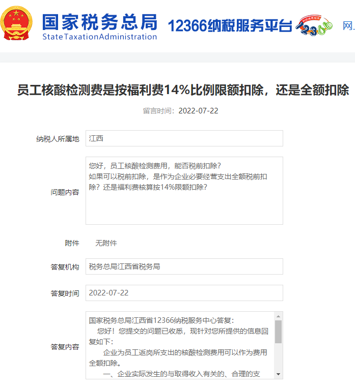 感谢您的咨询!上述回复仅供参考,若您对此仍有疑问,请联系江西税务12366或主管税务机关。