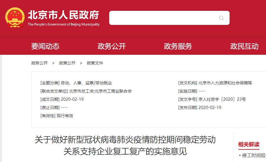 同时,在2020年2月人社部发布的《复工复产中的劳动用工、劳动关系、工资待遇、社保缴费等问题》的解答中: