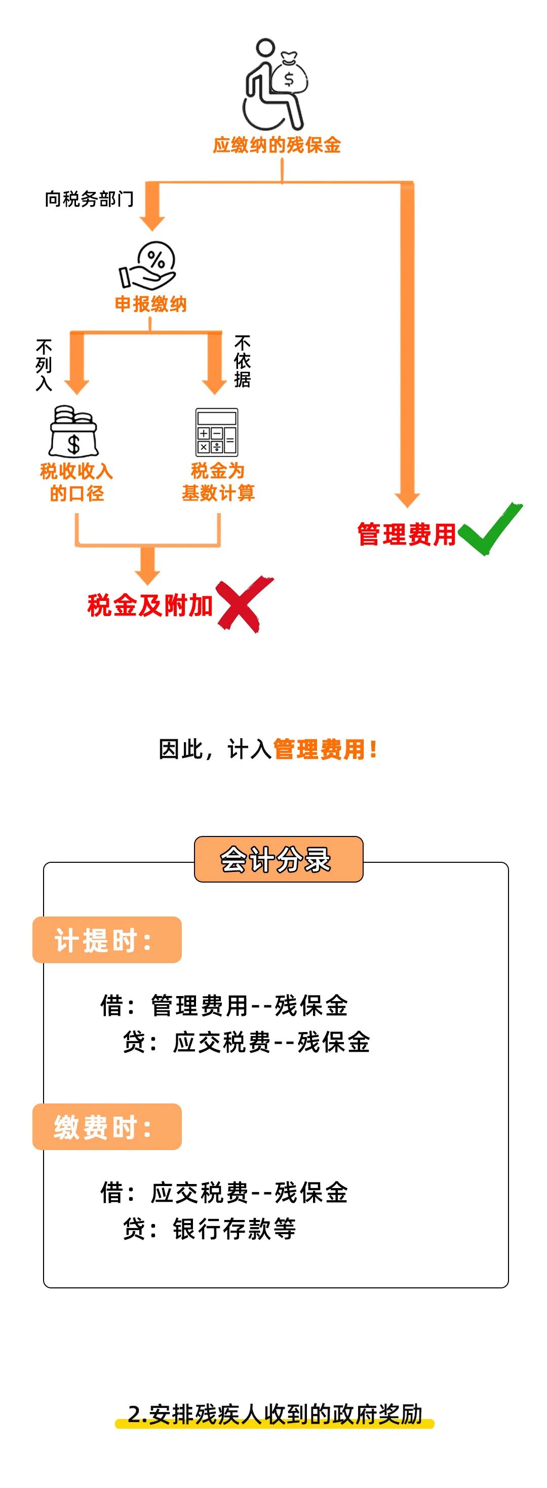 注:财政部会计司明确,企业根据《残疾人就业保障金征收使用管理办法》(财税〔2015〕72号)的规定,应缴纳的残疾人就业保障金,应当计入“管理费用”科目。
