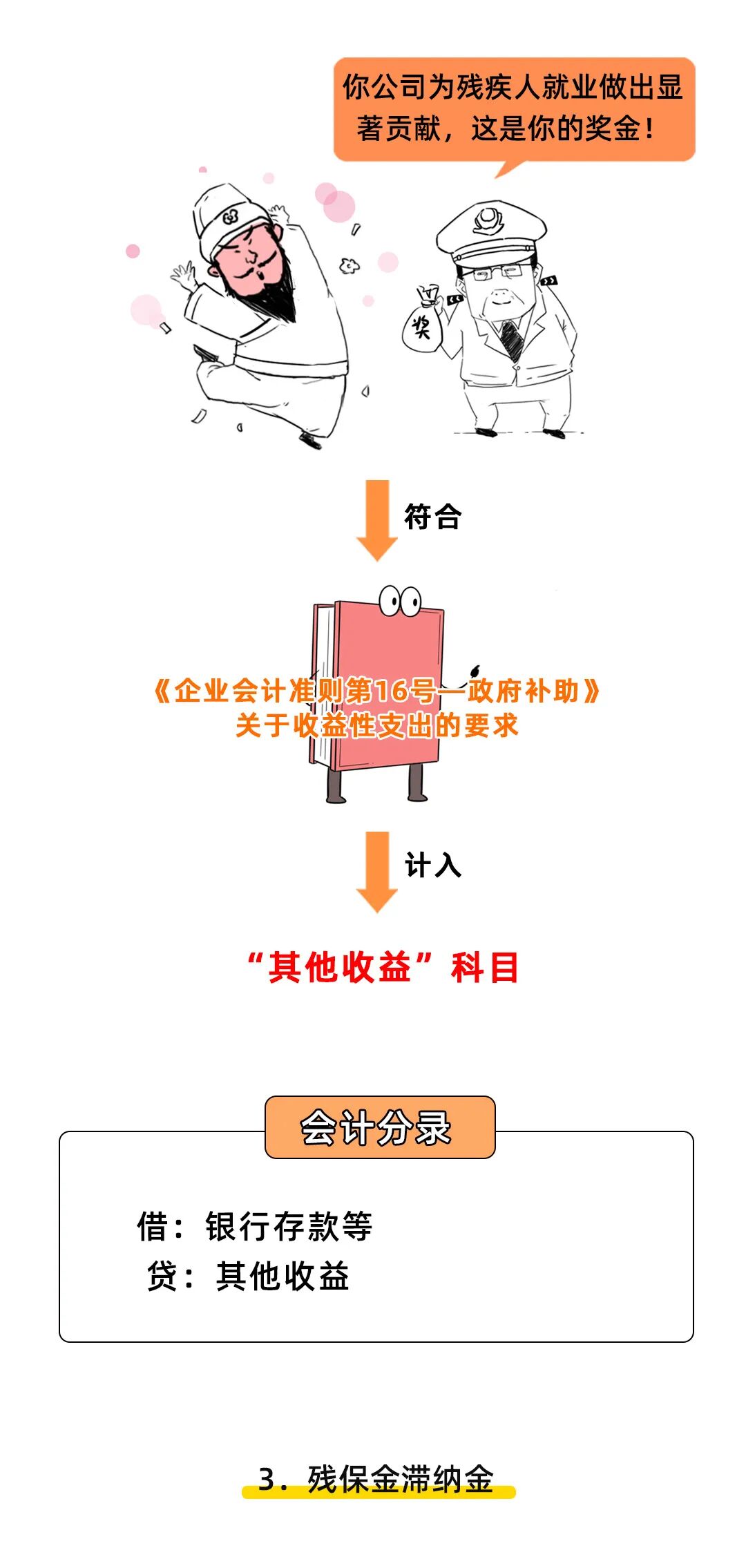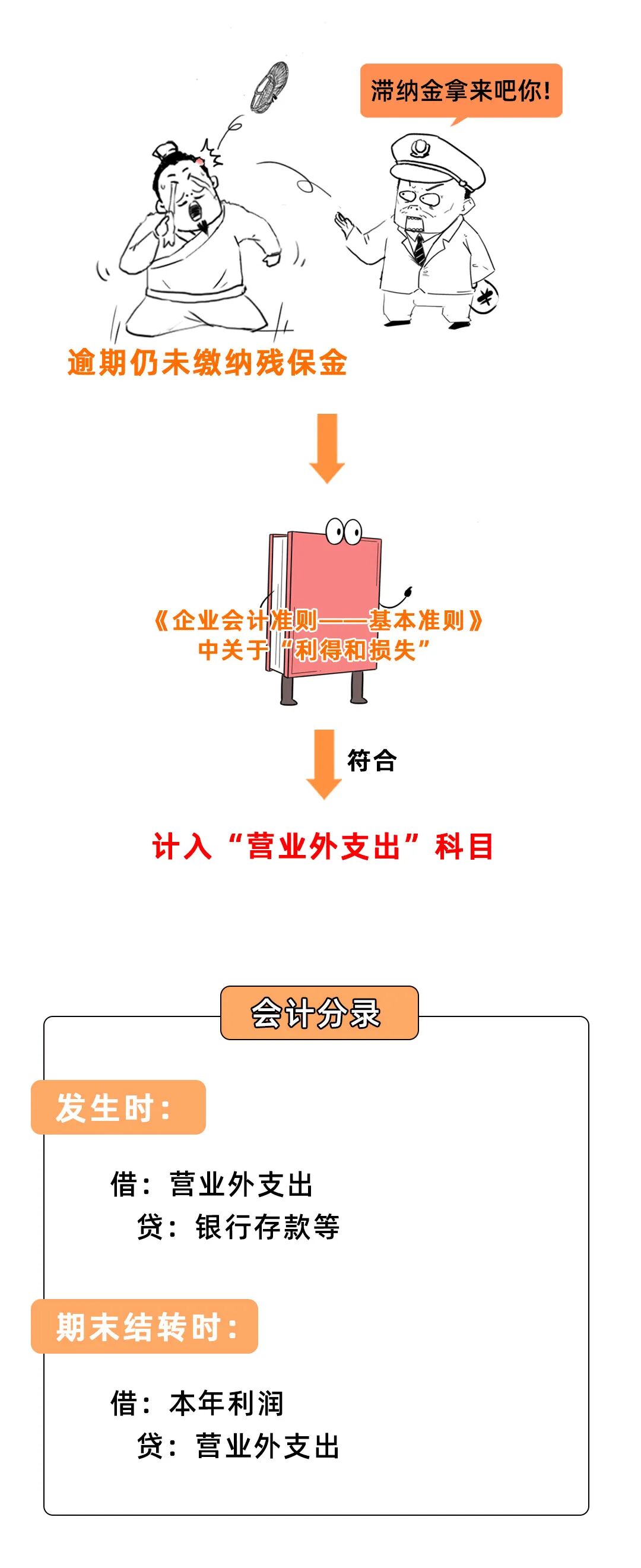 注:财政部会计司明确,企业未按规定缴纳残疾人就业保障金,按规定缴纳的滞纳金,计入“营业外支出”科目。