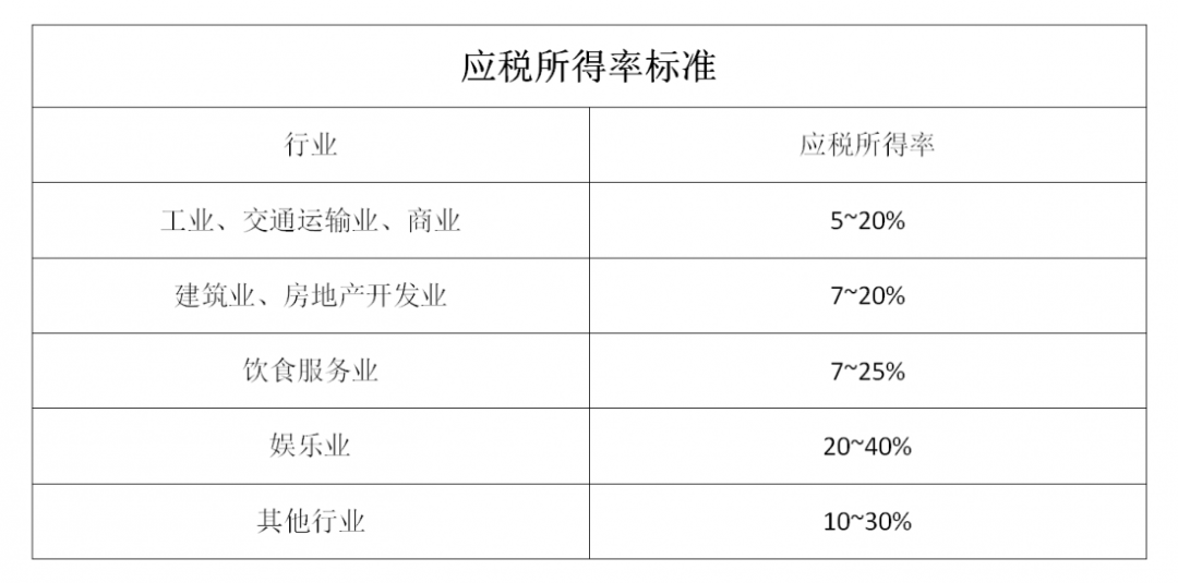 (1)应纳税所得额核定方法分为按收入总额、按成本费用和按经费支出换算收入
