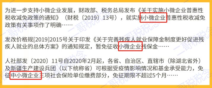 但是呢在税收政策领域,小微企业在具体不同税收优惠政策中又被赋予了不同的标准,比如免残保金的小微企业标准就是人数设定,免增值税的小微企业标准主要就是销售额标准,企业所得税优惠的小型微利企业又涉及资产、从业人数等。