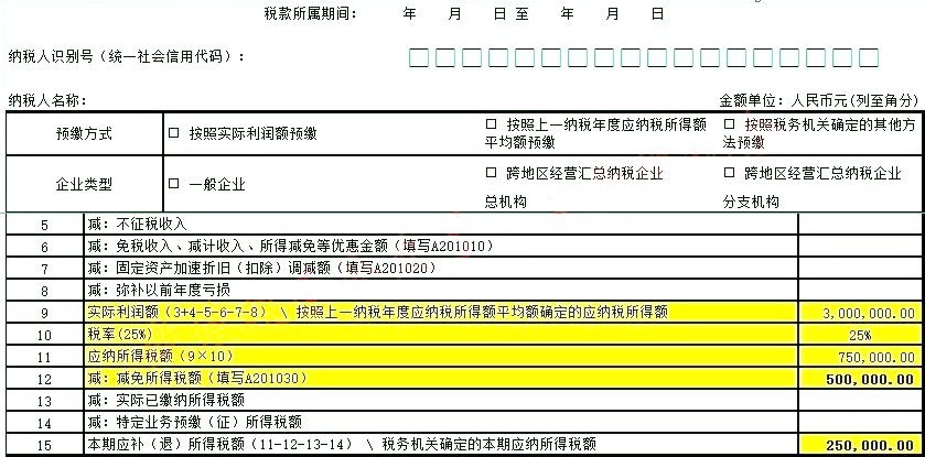 额。300万计算出来的减免企业所得税的金额就是50万。