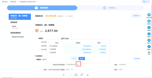 路径:电子税务局-我要办税-税费申报-简易确认式申报。一、点击【简易确认式申报】功能后,系统自动判断纳税人是否符合简易确认式申报规则,若符合,系统自动进入税费种选择导航页面。二、进入【税费种选择导航】页面,系统自动列出纳税人所有待申报的税费种。对于符合简易确认式申报条件的税费种,系统默认全部勾选,纳税人可根据实际情况进行选择调整;对于不符合条件的税费种,系统默认不可勾选并提供单税费种申报指引,纳税人根据指引进行申报办理。纳税人选择完成后,点击【去办理】按钮,进入税费试算界面。三、进入税费试算界面,系统根据纳税人的特征信息自动展示纳税人选择税费种的本期应补退税额合计、货物及劳务销售额、服务不动产和无形资产销售额、营业收入、营业成本、利润总额等要素数据。2、若纳税人根据实际经营情况需要调整相关要素数据,可进行编辑调整,如存在未开票收入情况,纳税人可将未开票收入分货物、服务分别进行补录。输入完成后点击“确定”按钮。3、纳税人如需进入申报表填表界面,点击【我要填表】,进入填表式申报模式。4、纳税人确认相关数据无误后,即可点击“下一步”。四、进入【申报确认】页面,该页面详细展示了纳税人所选税费种的销售额、应纳税额、本期应补退税额等信息。纳税人若需要查看,可点击【查看报表】按钮,查看对应税费种的标准申报表。确认无误后,点击【申报提交】进行申报。 五、申报提交后纳税人需要输入“真实”、“责任”完成提交确认,输入完成后点击“确定”按钮即可提交申报数据。六、申报成功后,纳税人可以查看本次申报成功及待缴款的明细信息。纳税人可以通过“马上缴款”和“预约缴款”两种方式进行税费缴纳。1、纳税人当期发生了超过简易确认式申报界面补录的数据项,应该如何申报?答:纳税人可点击简易确认式申报界面的【我要填表】功能进入填表模式申报。2、如果纳税人需要享受重点群体人员或自主就业退役士兵优惠政策该如何操作?答:纳税人可在税费试算页面享受优惠情况点击【税收减免报告】进行优惠信息采集。答:通过点击经营情况-增值税下的“货物及劳务销售额”或“服务、不动产和无形资产销售额”,弹出相应的填报弹窗进行填写。弹框中默认会带出发票数据,如有未开票收入,在带出来的数据基础上加上未开票收入即可。4、简易申报成功后,发现数据录入错误,如何进行更正申报?答:纳税人可以通过我要办税-税法申报及缴纳-申报更正与作废功能,针对填报错误报表进行更正操作,或是通过右上角搜索功能搜索申报更正与作废进入,针对填报错误报表进行更正操作。5、若纳税人仍想采用传统表单填报的方式申报模式,如何进行传统表单填报的方式申报?答:在申报模式页面首行,有“我要填表”的显著字样,纳税人点击“我要填表”,即可进入到传统表单填报的方式申报模式。