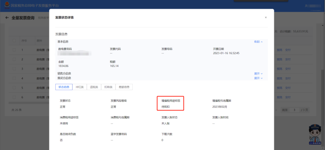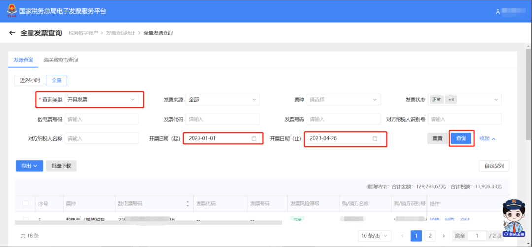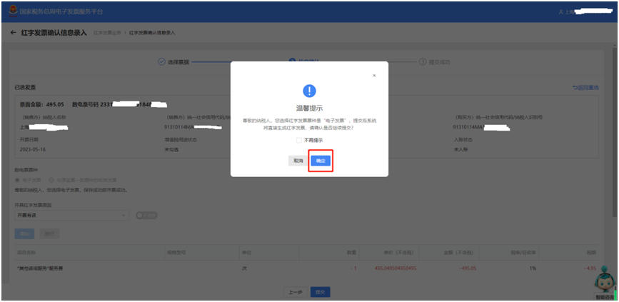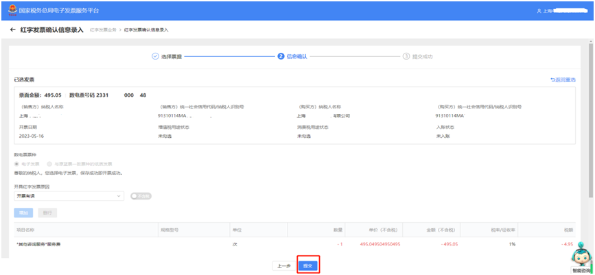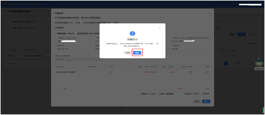 在蓝字发票开具过程中,当点击“立即开票”时,系统会跳转身份认证,这个身份认证频次可手动设置时间间隔,那如何设置身份认证频次?往下看~ 我不想太频繁进行人脸识别,怎么办? 您好,公司的法定代表人或财务负责人登录电子税务局【我要办税】→【开票业务】→【蓝字发票开具】→位于发票额度下方的【身份认证频次设置】,修改您人脸识别的认证刷脸频次。 具体的修改路径如下 1. 点击【我要办税】路径下的【开票业务】 2. 在【蓝字发票开具】界面,找到位于发票额度下方的【身份认证频次设置】 3. 在【身份认证频次设置】界面,根据实际需要修改您人脸识别的认证刷脸频次,身份认证时间间隔可以设置范围为0.5小时—24小时。 需要用法定代表人或财务负责人的账号登录,才可以在【身份认证频次设置】模块进行设置! 二、如何将税控系统中客户信息和商品编码一键导入? 一、商品编码税控批量导入操作步骤 (一)从税控系统导出商品编码信息 1.登录增值税发票开票软件-系统设置-商品编码。 (二)电子发票服务平台批量导入商品编码 1.登录国家税务总局上海市电子税务局,进入项目信息维护模块。 二、客户信息税控批量导入操作步骤 (一)从税控系统导出客户信息 1.登录增值税发票开票软件-系统设置-客户编码。 (二)电子发票服务平台批量导入客户信息 1.登录国家税务总局上海市电子税务局,进入客户信息维护模块。 如果开具的数电票,对方还没有勾选,只需找到需要开具红字发票对应的蓝字发票,选择好数电票票种和开具红字发票原因后,提交并确认后即开票成功。 01、首先登录电子税务局,选择其中一种方式验证登录成功。 02、选择【我要办税】,点击【开票业务】,再选择【红字发票开具】。 03、在红字发票业务的常用功能页面,点击【红字发票确认信息录入】,选择需要开具红字发票对应的数电票信息。 04、确认已选发票信息,包括基本信息、数电票票种、开具红字发票原因,点击提交并确认。 05、红字发票开具成功,实现确认即开具。 纳入数电票试点的企业开具红字发票,对于已勾选的发票,任意一方可以填开并上传《红字发票信息确认单》,需要对方确认,但一经确认即自动开票成功。 一、销售方 1.首先登录电子税务局,选择其中一种方式验证登录成功。 2.选择【我要办税】,点击【开票业务】,再选择【红字发票开具】。 3.在红字发票业务的常用功能页面,点击【红字发票确认信息录入】,选择需要开具红字发票对应的数电票信息。 4.确认已选发票信息,包括基本信息、数电票票种、开具红字发票原因,点击提交并确认,此时系统将红字发票信息确认单发送对方,等待对方确认。 二、购买方 1.前面的步骤一致,登录电子税务局——首页——【我要办税】——【开票业务】——【红字发票开具】——【红字发票确认信息处理】,选择购买方信息,开票时间等信息后,点击查询。 2.在【红字发票确认信息】中,选择同意确认红冲的发票,点击查看,确认无误后点击确定。 3.确认无误后,显示确认成功,在【税务数字账户】——【发票查询统计】——【全量发票查询】,我们可以看到已经成功开具的红字发票,确认即开票,无需对方再行操作。 温馨提示 确认即开票功能目前仅针对数电票,使用数电纸票红冲数电纸票时仍需手动开具红字发票。 四、如何查询开给客户的发票是否已勾选抵扣? 1.登录电子税务局 2.点击“我要办税”--“税务数字账户” 3.点击“全量发票查询” 4.“查询类型”选择“开具发票”,选定“开票日期(起)”、“开票日期(止)”,点击“查询” 5.选择想查询的发票,点击“详情” 6.查看“增值税用途标签”,即可查询增值税发票是否抵扣三、红字发票确认即开票!
