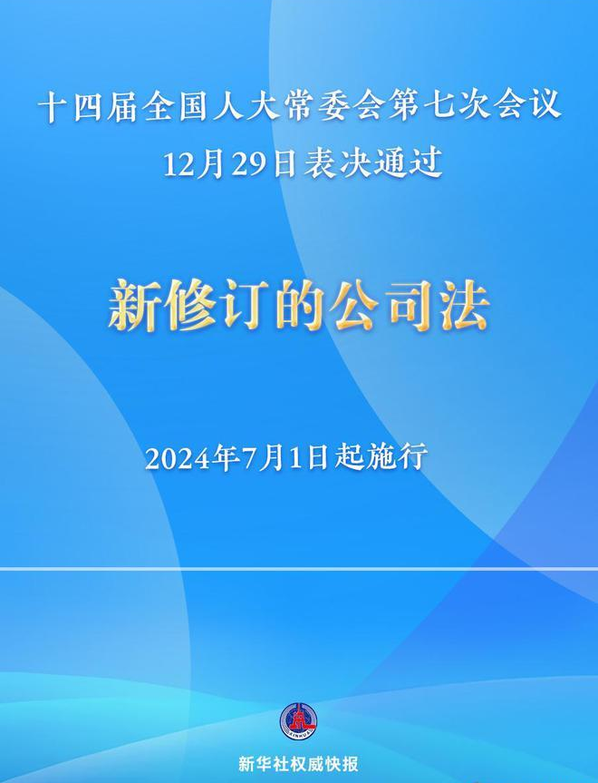 《中华人民共和国公司法》2023年12月29日已确认修订通过,将自2024年7月1日起施行。