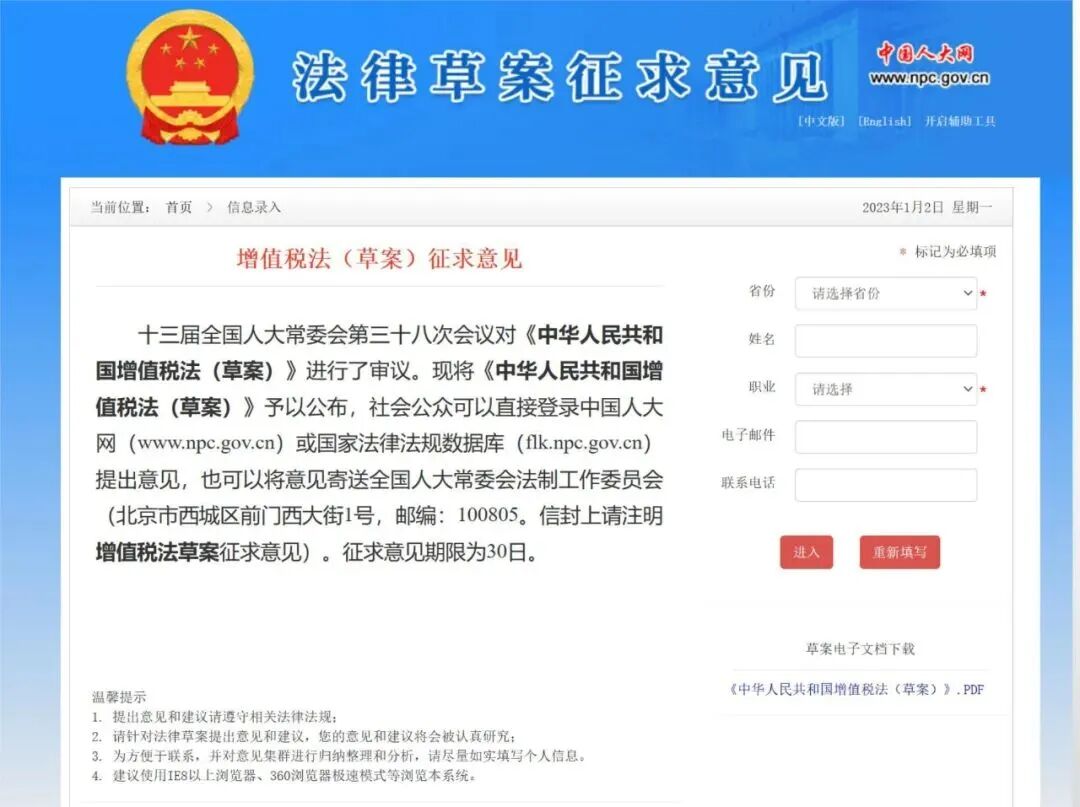 年底前完成立法!根据《全国人大常委会2024年度立法工作计划》的安排,2024年要制定《增值税法》。具体来说,常委会对《增值税法(草案)》的第三次审议安排在2024年12月份,这也意味着,《增值税法》将在年内完成立法工作。
