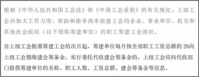 其实并不是江西地方规定,根据《中华全国总工会办公厅关于规范建会筹备金收缴管理的通知》(厅字〔2021〕20号)第一条规定: