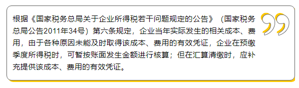 注意:对于预付款支出,企业在次年或者次年税款所属期间(次次年)汇算清缴结束前取得发票,均可以依法税前扣除。