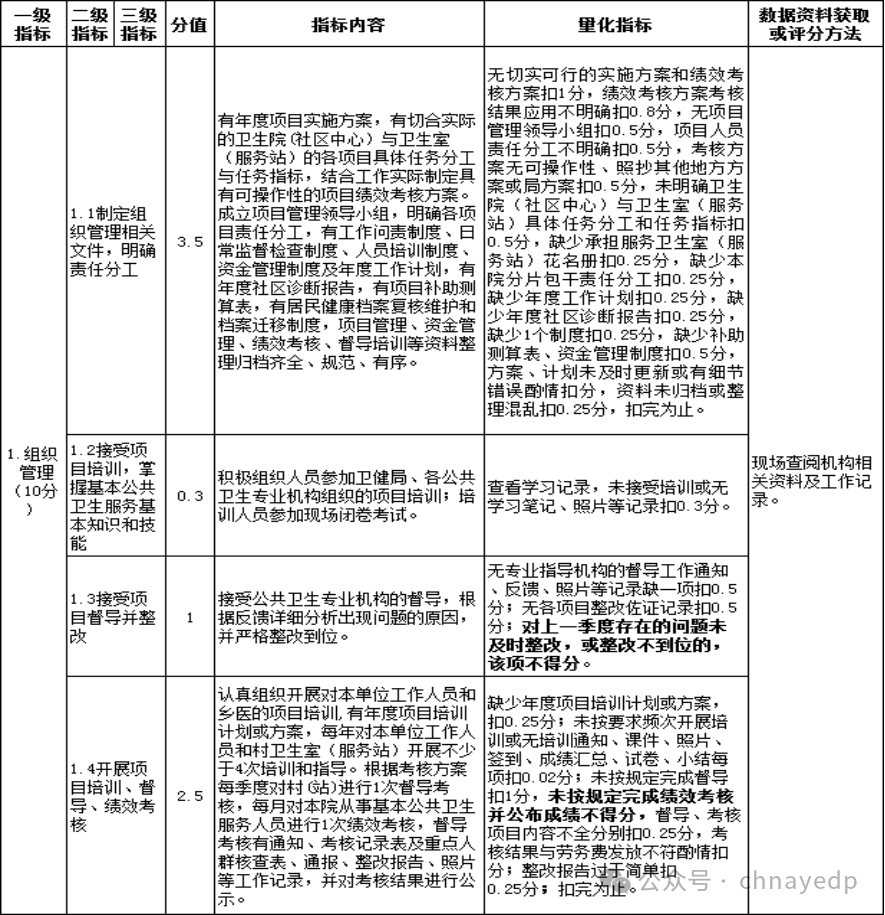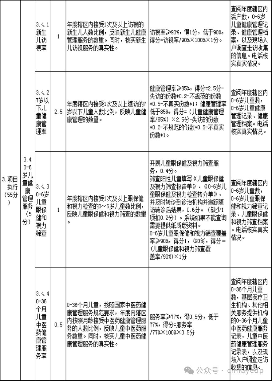 基本公共卫生服务项目绩效评价指标(镇街卫生院、街道社区卫生服务中心)