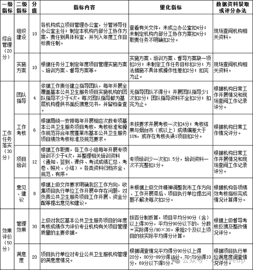基本公共卫生服务项目绩效评价指标(公共卫生专业机构)