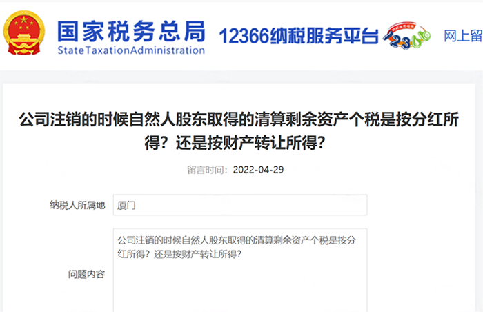 问题:公司注销的时候自然人股东取得的清算剩余资产个税是按分红所得?还是按财产转让所得?