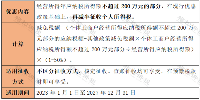 1 个体户开票金额超过这个数 查账征收! 四川省税务局针对个体户税收征管,出台了一系列政策: 重点提取: 1、市税务局严格按照《个体工商户建账管理办法》要求,规范纳税人建账。 (1)对销售增值税应税劳务且月销售(营业)额在40000元以上等纳税人,辅导设置复式账; (2)对销售增值税应税劳务月销售(营业)额在15000元至40000元等纳税人设置简易账,强化个体户建账管理。 (3)对其他建账不规范的纳税人采用定额管理,强化纳税人主动纳税意识。 2、年开票收入在400万以上的个体户,建立““个转企重点培育库””,定期开展数据交换,精准开展个转企工作,确保个转企质效。 3、市税务局针对用票开票量少的个体户,采用定期定额管理,对年开票超过400万以上的个体户采取查账征收,强化个体发票管理。 2022年9月份,黑龙江大庆、海南定安等税务局,对月销售额10万以上的个体工商户,全部取消核定征收,一律实施查账征收。 除此之外,目前为止,全国各地核定征收的政策都在收紧,像上海、山东、浙江 、贵州、福建、湖北等地,已经在逐渐取消核定征收政策。 2 个体户还不建账? 查的就是你! 在个体户查账征收的大背景下,个体户的建账已经刻不容缓了。 根据《个体户建账管理暂行办法》规定,个体户也得建立账本,而且和公司建立的账本一样。如果实在达不到建账标准的个体户,也得经过税务机关批准,建立收支凭证粘贴薄、进销货登记薄。 小编建议,个体户有条件的还是应该建账,一则是内部的管理更规范,二则一旦被稽查到才能有凭证可以依赖,最起码也应该建立收支凭证黏贴簿、进货销货登记簿等。 3 2024年10月,严查开始! 个体户必须这样开票! 严查下,个体户、个独企业开发票必须具备8个有: 1、一个有 具有真实经济业务。 税务局对发票背后业务实质的关注远远大于发票本身,发票仅仅是一个表象而已,因此业务真实为第一前提。 2、二个有 具有与业务规模相匹配的人员。 因为没有人员就没有相应的业务能力!个体户的负责人不要进入黑名单,需要具有完全民事行为能力的,避免用60岁以上的人员,预留负责人电话必须为有效电话! 3、三个有 具有证明业务发生的证据。 比如一份咨询费的发票,是否有咨询专家的专业资质、人员专业能力及简介等证明资料;同时要关注咨询事项与本企业生产经营的直接相关性。 再次,企业要将咨询事项、签订的合同、完成项目计划、时间、人员安排,支付款项方式、成果体现方式(如方案、报告等资料)的存放地点和保管人,以及后续针对咨询事项的实施、调整、效果等情况资料,进行统一收集保管和存档。 4、四个有 具有真实的注册地址和真实的经营场所。 若是大部分个体户、个人独资企业集中在税收洼地注册,就会成为稽查的重点区域。 2024年,利用税收洼地进行恶意的税收筹划是税务严查的重点! 5、五个有 有真实的资金流。 不管是提供了服务还是销售了货物,是否收取了款项?是否公对公转账了?是否存在资金回流现象? 6、六个有 签订了证明业务真实的合同或者协议。 不要简单地以为只要签订了合同的发票,就是没有问题的发票。 合同仅仅是次要证据之一,签订合同时更多的关注内容细节、时间点、程序、流程、成果展现、所达目标等。 合同切记不要仅仅一页纸,一定要签订的真实全面。 7、七个有 成立具有合理的商业目的。 切记不要仅仅为了开票而设立。 设立个体工商户,必须符合经营需求、更要符合集团战略发展的要求,将设立的每个经济实体融入到整个产业价值链中去,这才具有合理的商业目的。 8、八个有 对外销售有合理的定价。 价格明显偏高或者偏低都带有人为转移利润的嫌疑。 特别是与关联方之间的交易定价是否合理,因为这是税务机关检查时的重点关注事项。 价格的“度”,也就是合理性非常重要!一旦过了,不合理了,难以自圆其说! 4 个体户都有哪些税收优惠? 个体工商户可以是一般纳税人,也可以是小规模纳税人,所以: 一、增值税 (一)满足一定销售额标准免税 1.对月销售额10万以下(含本数)的增值税小规模纳税人,免征增值税。 2.小规模季度免税销售额30万,只有在纳税人开具普票时享受,开具专票的不得享受!此优惠3%征收率的可以享受。 3.增值税小规模纳税人适用3%征收率的应税销售收入,减按1%征收率征收增值税;适用3%预征率的预缴增值税项目,减按1%预征率预缴增值税。 政策执行期:2023年1月1日至2027年12月31日 (二)即征即退和免征 二、附加税费 1.个体工商户减征“六税两费”政策 由省、自治区、直辖市人民政府根据本地区实际情况,以及宏观调控需要确定,对个体工商户可以在50%的税额幅度内减征资源税、城市维护建设税、房产税、城镇土地使用税、印花税(不含证券交易印花税)、耕地占用税和教育费附加、地方教育附加。个体工商户已依法享受资源税、城市维护建设税、房产税、城镇土地使用税、印花税、耕地占用税、教育费附加、地方教育附加其他优惠政策的,可叠加享受此项优惠政策。 政策执行期:自2023年1月1日至2027年12月31日 2.个体工商户可免征印花税 个体工商户的以下凭证,免征印花税: 财产所有权人将财产赠与政府、学校、社会福利机构、慈善组织书立的产权转移书据;个人与电子商务经营者订立的电子订单。 三、个人所得税 优惠政策: 注意!小规模纳税人的个体户可