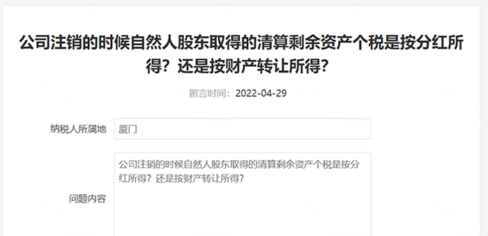 问题:公司注销的时候自然人股东取得的清算剩余资产个税是按分红所得?还是按财产转让所得?
