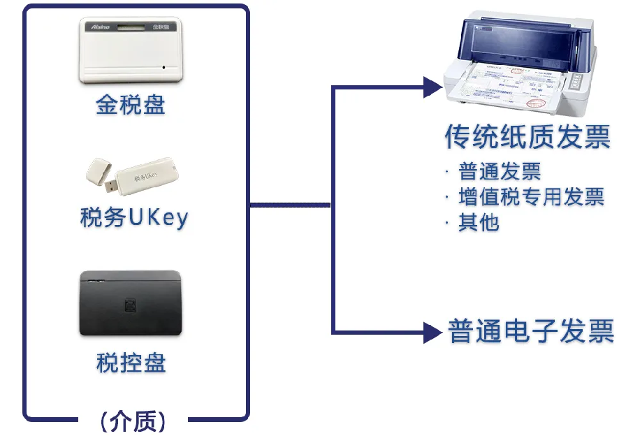 电子发票和纸质发票都需要使用各种特殊的税务控制设备,而数电票已经实现了“去介质化”,金税盘、税控盘、税务UKey等开票介质都不需要了。