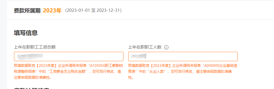 预填数据取自【2023年度】企业所得税年报表“A000000企业基础信息表”中的“从业人数”,您可自行修改,请注意申报数据的准确性。