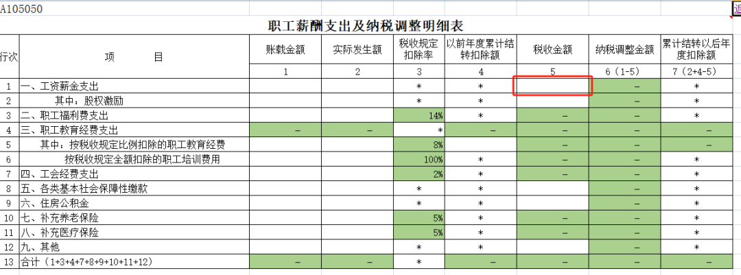 预填数据取自【2023年度】企业所得税年报表“A105050职工薪酬纳税调整明细表”中的“工资薪金支出税收金额”,您可自行修改,请注意申报数据的准确性。就是这个栏次: